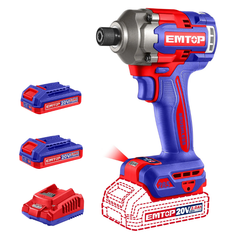 EMTOP ECIRL2028 hoạt động với điện áp pin 20V, mang lại sức mạnh vượt trội với lực tối đa lên tới 285Nm. Tốc độ không tải có thể điều chỉnh ở ba mức: 0-1600, 0-1900 và 0-2600 vòng/phút, giúp bạn xử lý công việc một cách nhanh chóng và chính xác. Nhịp đập búa cũng có thể điều chỉnh từ 0-2100, 0-2500 đến 0-2900 vòng/phút, giúp tăng cường hiệu suất làm việc.